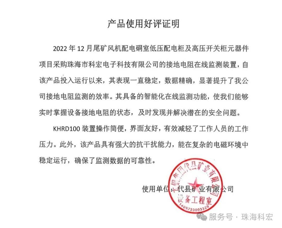 近日,太钢集团代县矿业对我司的接地电阻在线监测草莓黄色色色视频给予了高度评价,这一反馈无疑是对草莓视频免费观看高清在线看产品性能和服务质量的有力肯定。