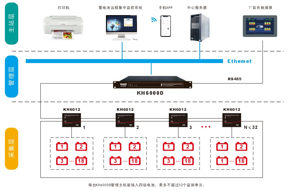 KH6000D蓄电池在线监测管理系统,主要应用于电力行业的发电厂、变电站;民航领域的候机楼、航管楼、雷达站、数据中心;石化钢铁领域的动力中心、变电站、数据中心;移动通信领域的基站、数据中心;新能源领域的风电、光伏、储能等直流电源、UPS电源、EPS电源系统蓄电池组的监控、维护与管理。